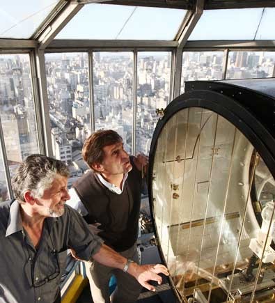 La vista desde la cúpula del Palacio Barolo se despliega con todos sus atributos de seducción. Allí se ve cómo la urbe crece sin pausa; los pocos espacios verdes entre sus altos edificios; sus inmuebles más emblemáticos y, a espaldas de la ciudad, el majestuoso Río de la Plata.