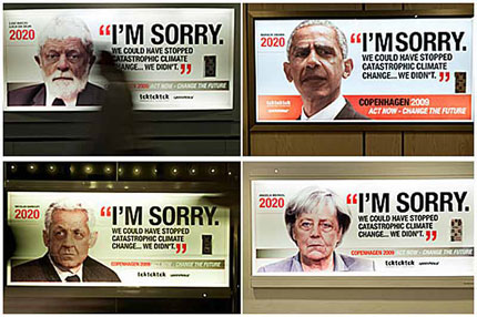 La leyenda de la campaña es "Perdón. Podríamos haber frenado el catastrófico cambio climático, pero no lo hicimos", y se lanza a pocos días de que comience en Copenhague la Cumbre Mundial sobre Cambio Climático.