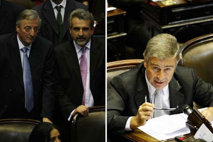 Kirchner y Rossi, golpeados por la derrota; el radical Aguad condujo la estrategia opositora |