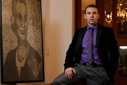 Con un saco oscuro de terciopelo, pantalones de buen corte y mocasines Prada, Toledo confiesa que en realidad se viste especialmente para las notas, porque a diario trabaja con zapatillas y jeans agujereados por los ácidos que manipula.