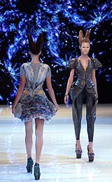 El creador británico -que trabajó con Showstudio.com para que su desfile fuera visto en vivo en Internet- instaló inmensas cámaras móviles en la pasarela, lo que contribuyó al ambiente futurista del espectáculo.