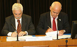Juan Carlos Lascurain y Enrique Meyer, firman el convenio. |