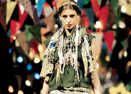 "Cada prenda reinterpreta el folklore de los países que recorrimos en esta década para encontrar nuestra identidad: libre, aventurera y ultrafemenina", explicó Acuña, mientras sobre la pasarela se colaban vestidos de gasas vaporosas y transparentes, las túnicas bordadas y mini vestidos.