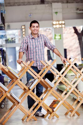 La intención de este creativo cordobés, que ya tiene su biblioteca expuesta en el Malba, es tratar de minimizar las partes de un producto, hacer de un mueble tradicionalmente voluminoso un objeto grácil.
