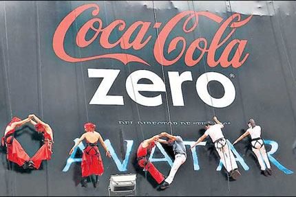 El "cartel viviente" que montó Coca-Cola para el estreno de la película Avatar, una muestra de innovación |