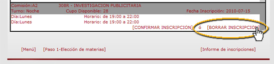 Haciendo click allí pasarás a la sección de Inscripción 2010. 2do Cuatrimestre.