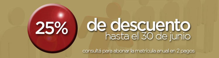 Podés aprovechar el 25% de descuento en la matrícula hasta el 30 de junio inclusive.